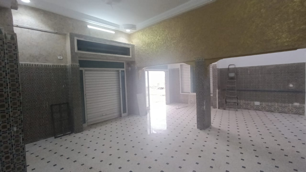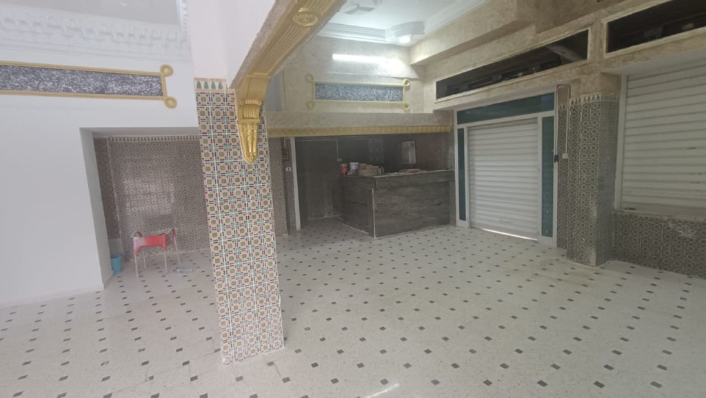 À vendre, un local commercial parfaitement adapté pour l’ouverture d’un salon de thé, situé dans une zone animée à proximité immédiate de la Maison des Jeunes. Ce bien propose 79 m² couverts comprenant un comptoir et une toilette, ainsi qu’une belle terrasse ouverte sur trois faces, portant la superficie totale à 150 m². Il est équipé de compteurs indépendants d’eau et d’électricité, y compris courant Force. Grâce à son emplacement stratégique et sa configuration conviviale, ce local représente une excellente opportunité d’investissement dans un cadre dynamique.