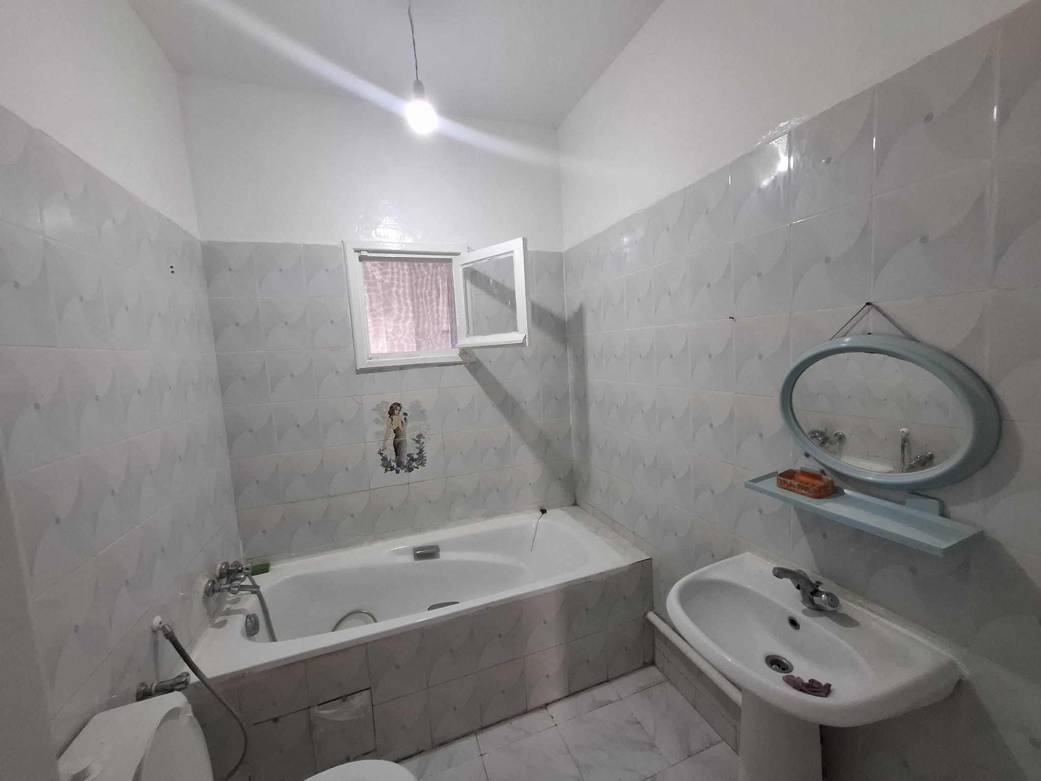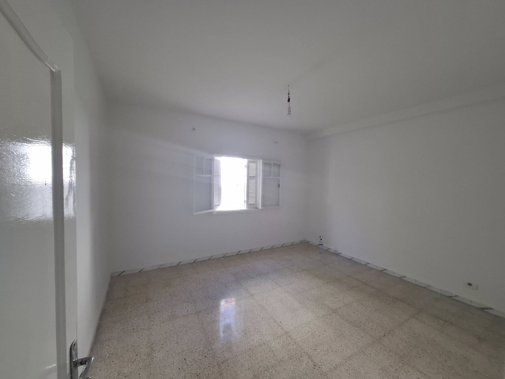 Appartement S+2 au rez-de-chaussée situé à Mourouj 5, près du centre Challeck. Il comprend un salon lumineux, deux chambres, une cuisine indépendante avec placard et séchoir, une salle de bain et des WC séparés. Le gaz de ville est disponible. L’appartement est fraîchement repeint et prêt à habiter. Une place de parking privée est incluse. Idéal pour un jeune couple ou pour un investissement.