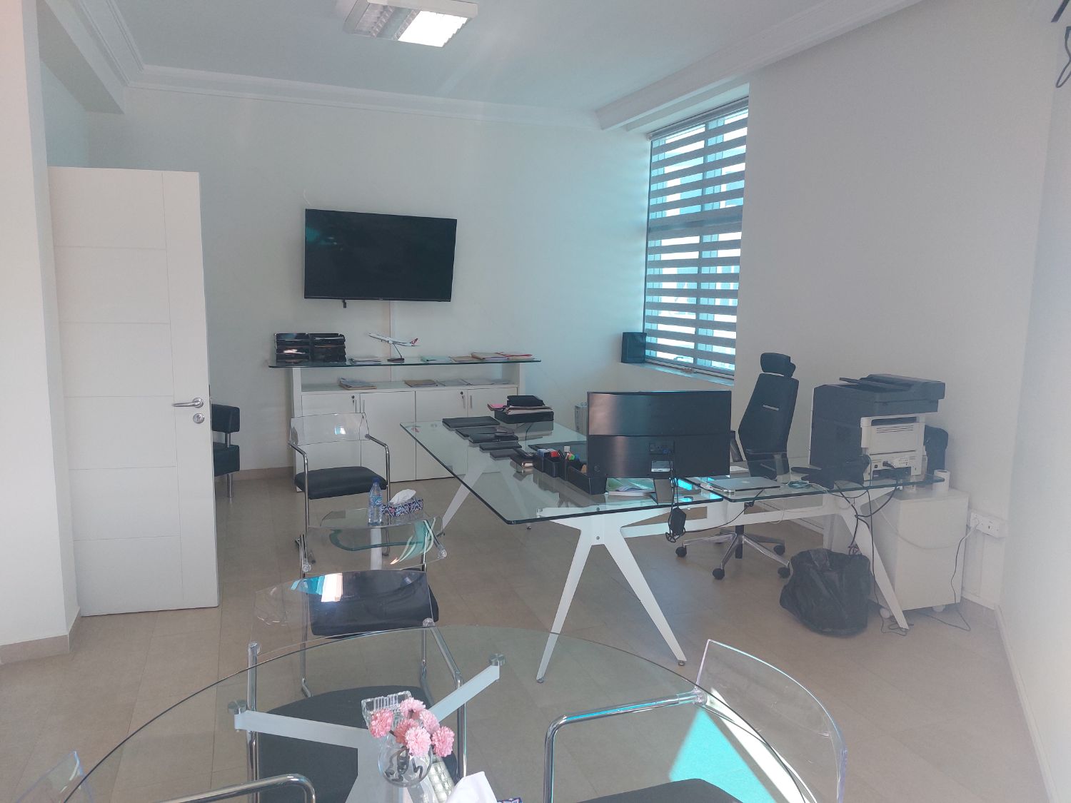 À louer un bureau haut standing situé au 2ᵉ étage d’un immeuble professionnel à la Zone Industrielle El Mghira. D’une superficie totale de 180 m², ce local se compose d’un accueil, 4 bureaux dont 2 bureaux de direction, une grande salle de conférence, une kitchenette et une sanitaire avec lave-mains.